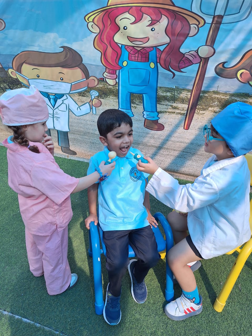 Role-play & dress-up to introduce real-world jobs, to encourage imagination & social development.